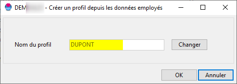 Le nom du profil reprend automatiquement le code de l'employé.