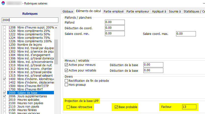 Afin que le programme puisse établir la projection des différents employés, il faut d'abord paramétrer les rubriques à prendre en considération.
